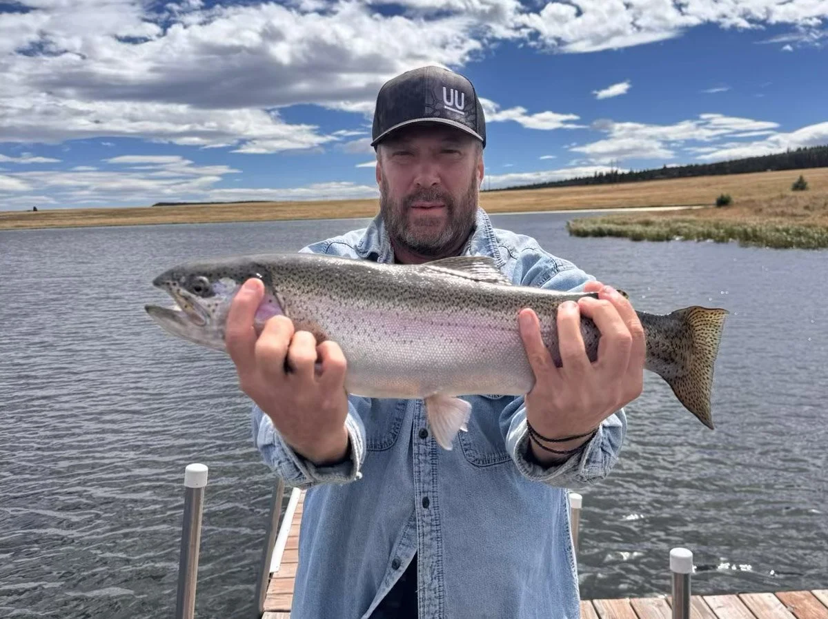 Middle Lake – Big Rainbows, boat dock, and a rustic cabin