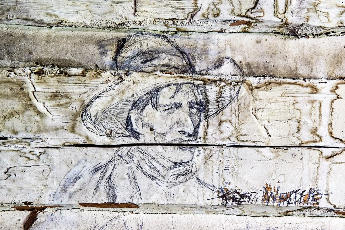 Will James, Self Portrait on Wall - La Grulla Cow Camp (click to enlarge)